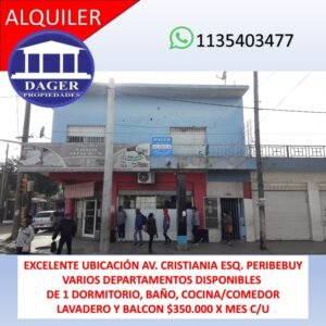 🏡 Departamentos en Alquiler Comodidades: 1 dormitorio Baño Cocina/comedor Balcón Lavadero 📍 Excelente ubicación: Av. Cristianía esquina Peribebuy ☎️ Para más información, comunicate con nuestros asesores: Teléfono fijo: 4485-9927 WhatsApp: 1135-403477 🏢 Oficinas: Av. Cristianía 1582, Villa Luzuriaga ✔